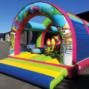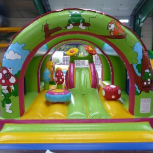 Enfin un matelas gonflable pour les petits ! Ils vont pouvoir s’amuser avec un jeu fabriqué à leur mesure. Tous les obstacles sont fabriqués pour pouvoir être à la taille des bambins, la petite chenille, les petites fleurs et même la mini borne.