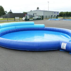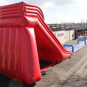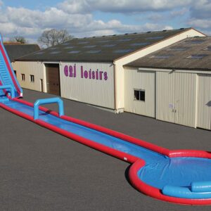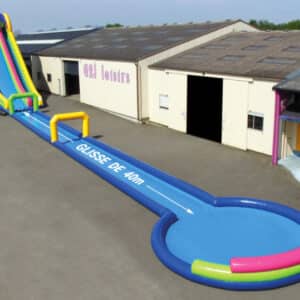 La piste aquatique est un toboggan de 11m de haut avec une plateforme de départ à 8.5m ainsi qu’un module de glisse et une aire d’arrivée.