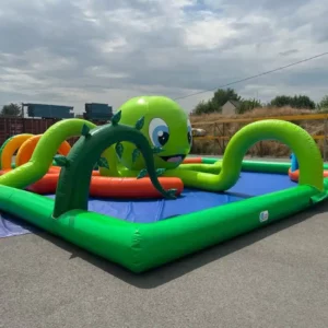 Le baby splash est composé d’un bassin d’eau (de très faible hauteur) dans lequel vous trouverez plusieurs obstacles aquatiques ludiques et colorés spécialement conçus pour ls petits avec une toile antidérapante au sol pour éviter les chutes.
