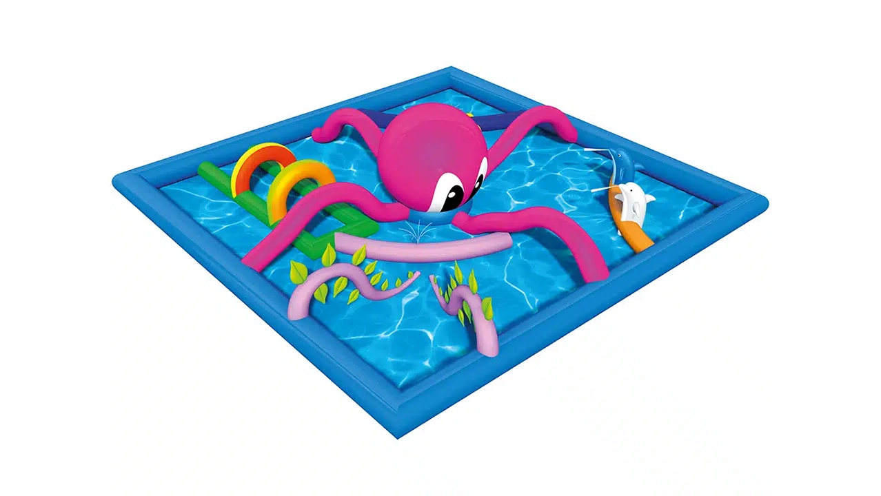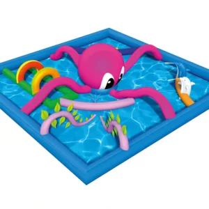 Le baby splash est composé d’un bassin d’eau (de très faible hauteur) dans lequel vous trouverez plusieurs obstacles aquatiques ludiques et colorés spécialement conçus pour ls petits avec une toile antidérapante au sol pour éviter les chutes.