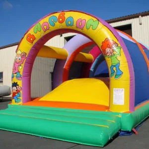 Vous avez un toboggan un parcours, un matelas.