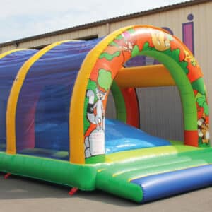 Vous avez un toboggan un parcours, un matelas.