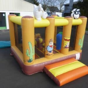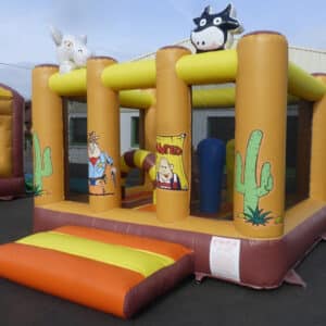 Jeu gonflable thème western avec des obstacles