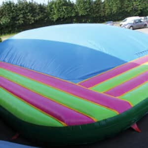 La Bulle de savon est un dôme mou XXL. Avec sa dimension de 14x11m ce jeu peut accueillir 50 personnes en même temps. Le jeu est simple les enfants doivent essayer de marcher, de tenir l’équilibre sur le dôme mou, sachant que les autres enfants font bouger le dôme, un jeu très amusant…