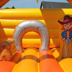Un grand matelas à sauter, des obstacles thème western, une belle déco, telle est la recette du succès de ce jeu gonflable. Le matelas gonflable cheval 3 murs est un matelas à sauter qui peut accueillir 30 enfants en même temps. Sa largeur de 5.5m lui apporte une grande surface de jeu. Avec ses obstacles ludique et colorés sur le thème western, les enfants vont adorer jouer les cowboys. Grâce aux murs sur les côtés et au fond les enfants jouent en toute sécurité. La grande entrée en façade permet aux parents de surveiller leurs enfants de loin.