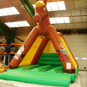 Le Cheval gonflable est une déclinaison de la célèbre girafe. Avec un matelas à sauter et une grande entrée, les enfants ont une belle surface pour pouvoir sauter et rebondir. Avec sa taille de 6.5×5.5m, le cheval peut s’installer partout et ses 140kg sur la balance le rendent facile à manipuler. Grâce aux filets et le mur arrière, les enfants jouent dans un endroit totalement sécurisé.