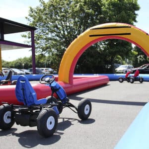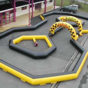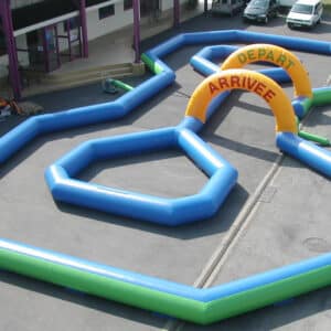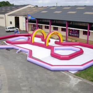 Vous cherchez un grand circuit pour faire du quad motorisé, de la mini moto ou de la voiture thermique. Ce circuit mesure 25m de long et 12m de large. Avec ses 2 arches gonflées, vous pouvez faire un départ et une arrivée et pour un style encore plus racing vous pouvez opter pour les marquages damiers sur les arches ainsi que l’impression de votre logo.