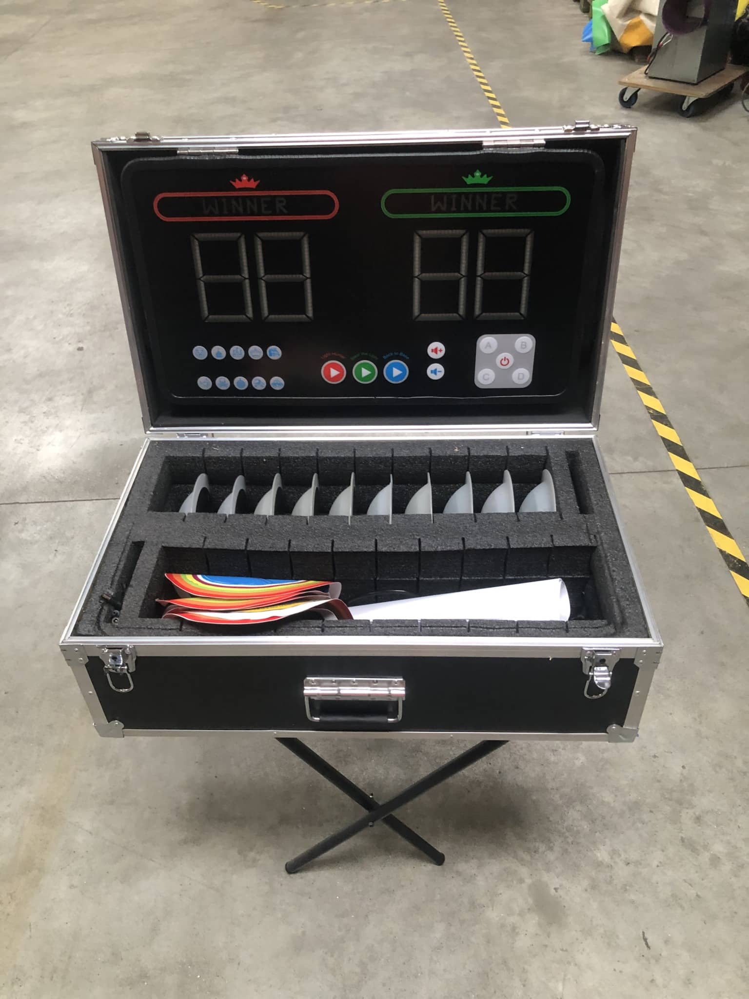 Doté de lumières, de sons et de plusieurs activités, vous pouvez ainsi proposer des jeux interactifs praticables à deux ou en équipe. Utilisable en intérieur comme en extérieur, ce système sans fil propose aux joueurs de frapper les spots à la main ou avec un ballon par ex. Le tableau d’affichage permet un suivi en direct des scores réalisés.