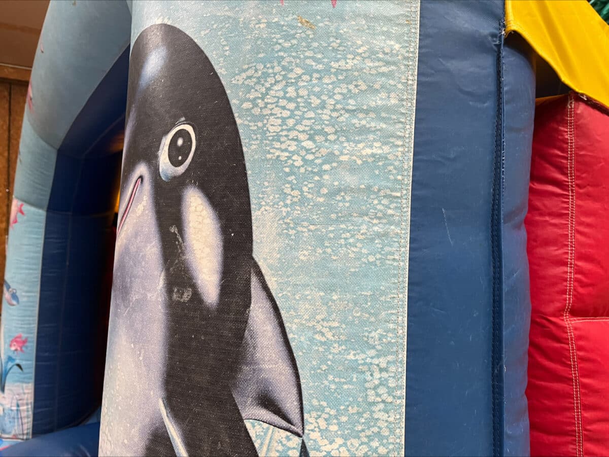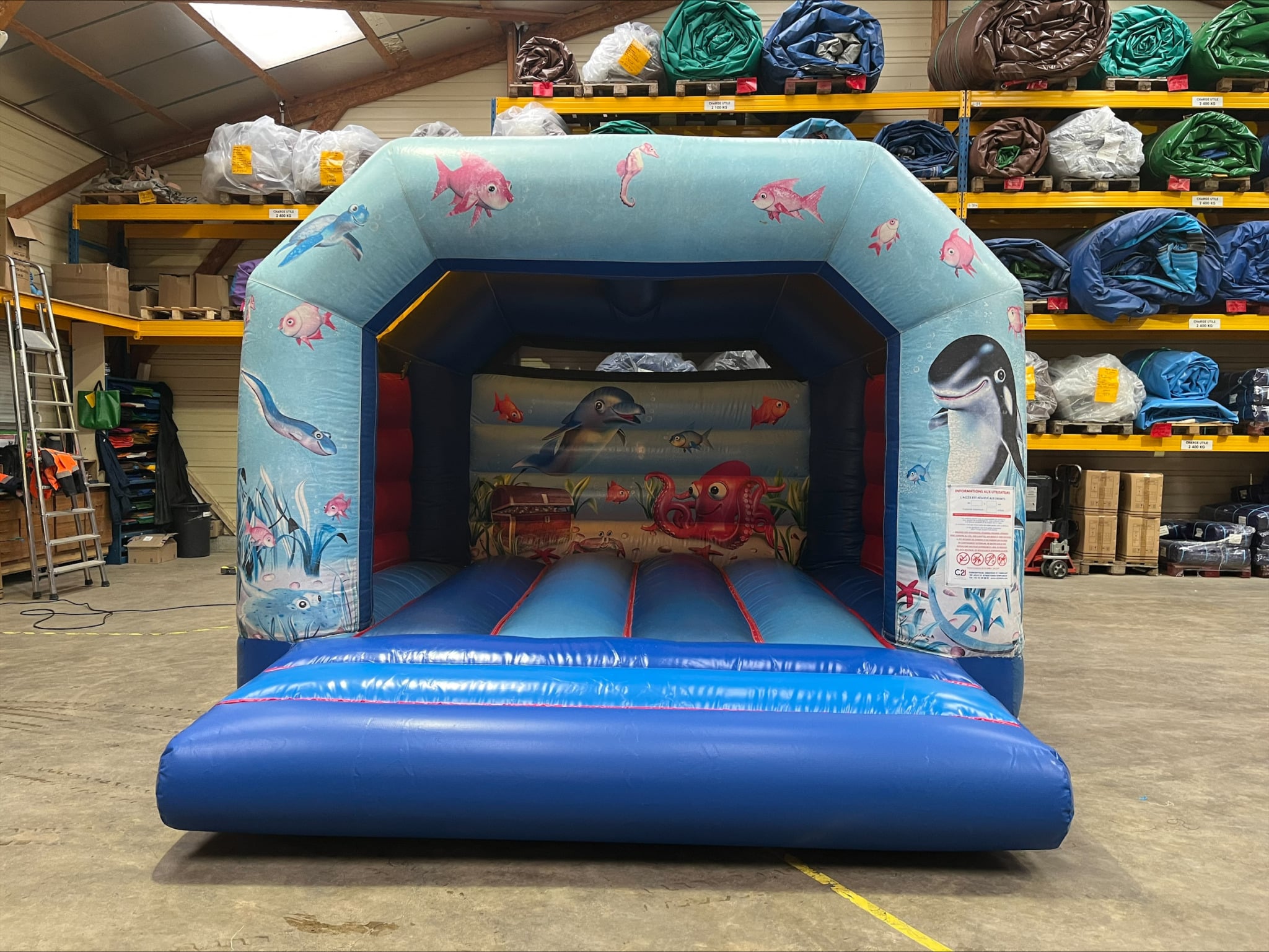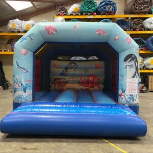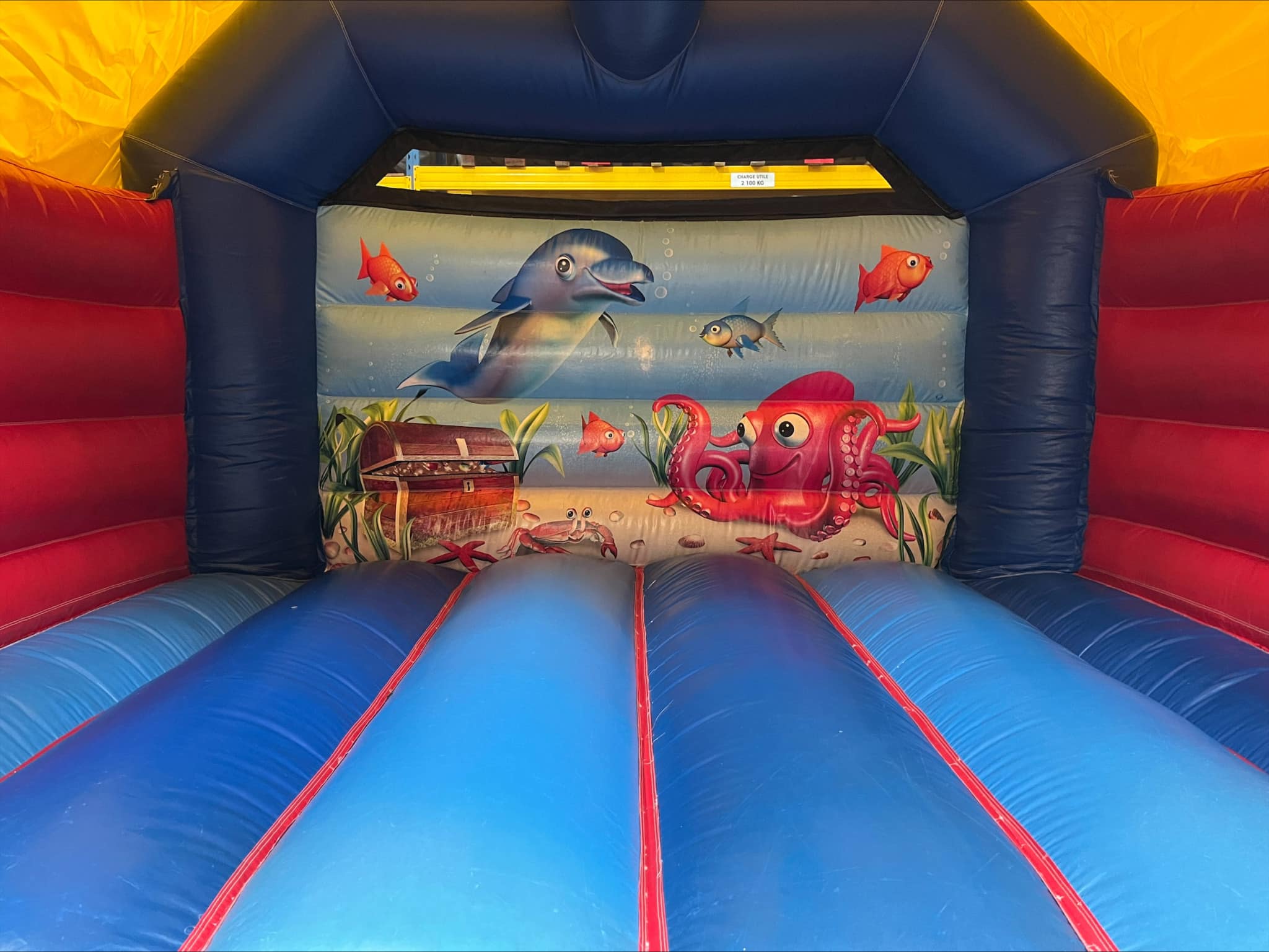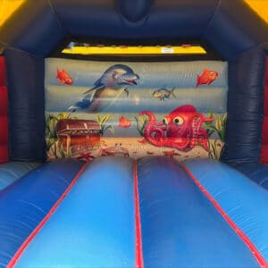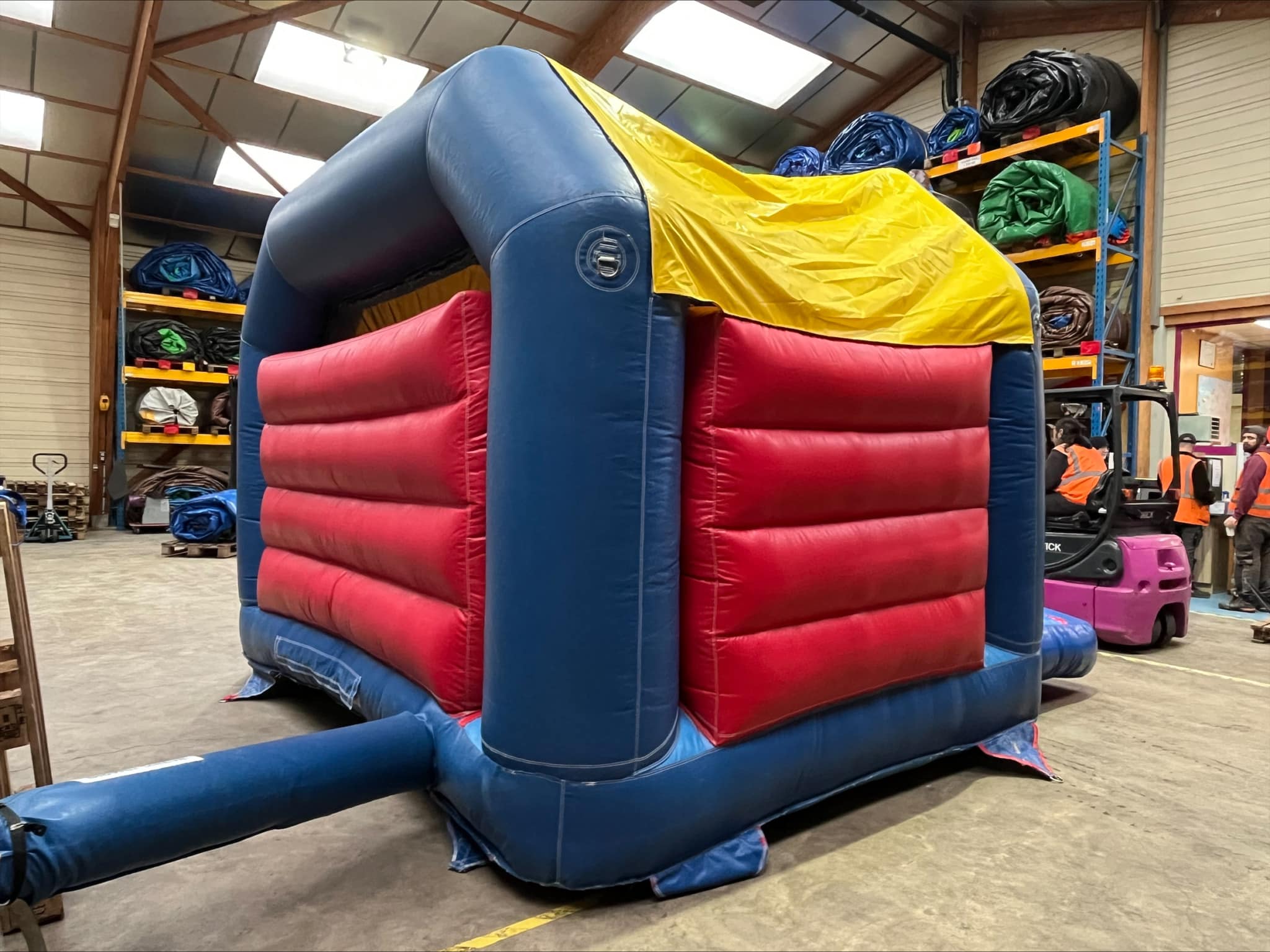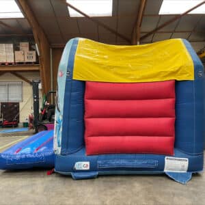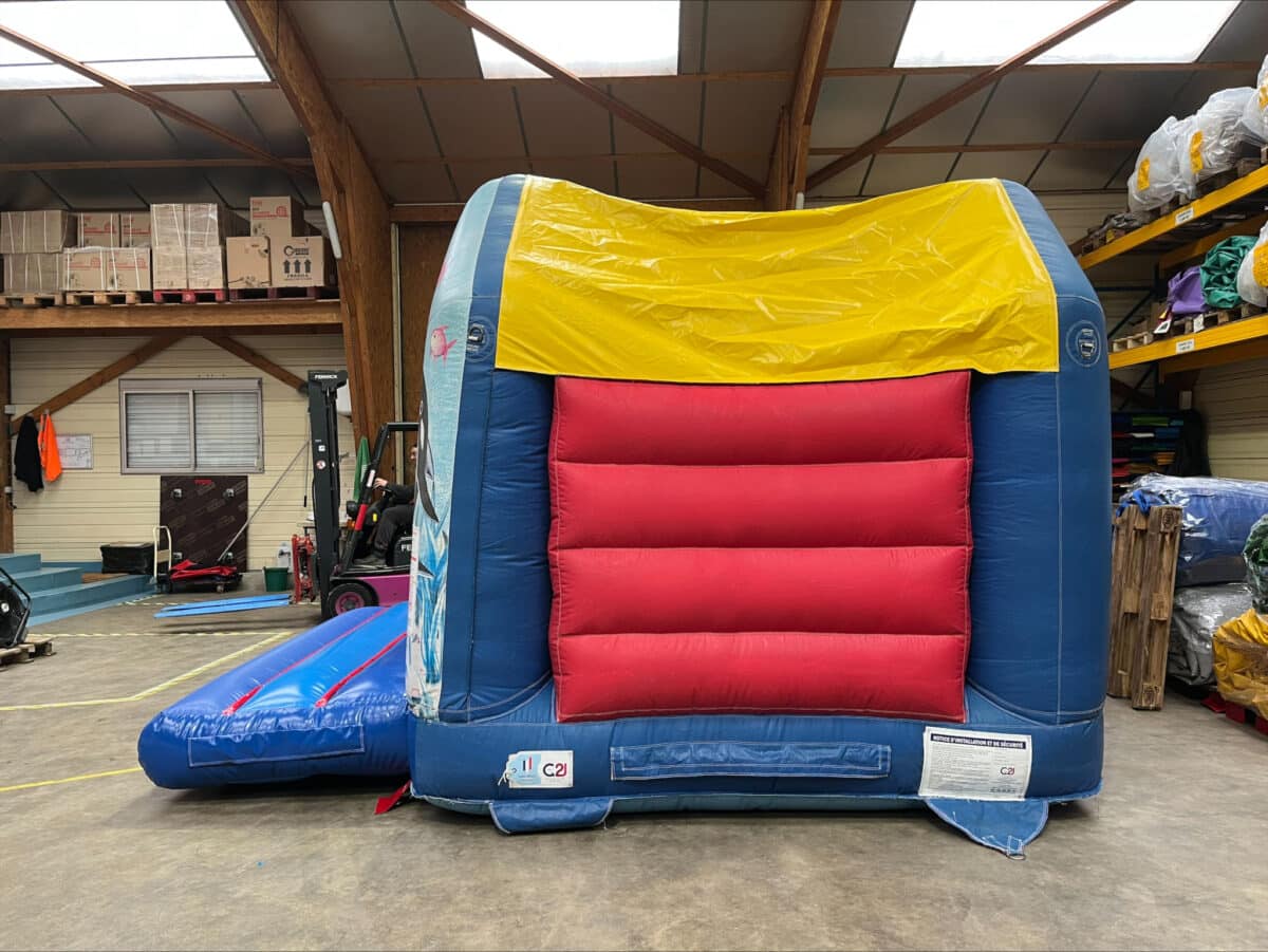 Jeu gonflable distribué dans la gamme PRET A GONFLER vendu avec gonfleur, piquets et bâche de sol