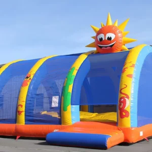 Vous avez un toboggan un parcours, un matelas.