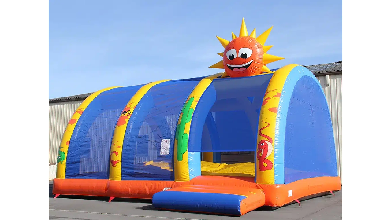 Vous avez un toboggan un parcours, un matelas.