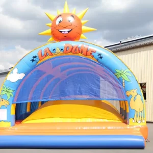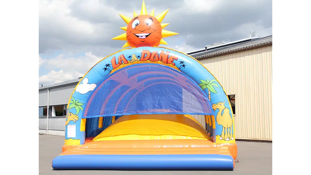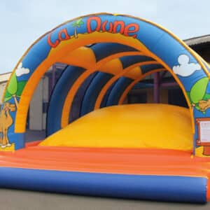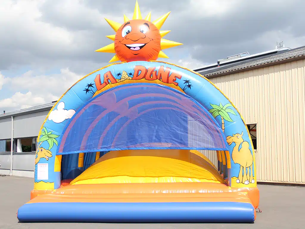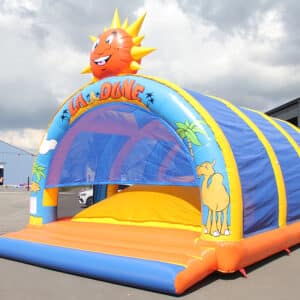 Le jeu est simple les enfants doivent essayer de marcher, de tenir l’équilibre sur le dôme mou, sachant que les autres enfants font bouger le dôme. Avec sa taille de 9x6m le dôme mou permet de faire jouer 25 personnes en même temps. Les filets sur les côtés et à l’arrière protègent les enfants et comme ils laissent passer la lumière, les parents peuvent surveiller leurs enfants.