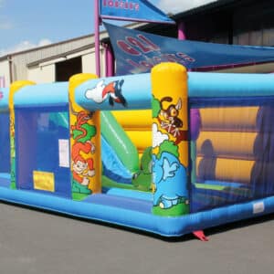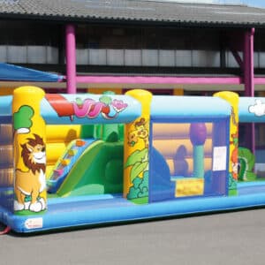 Ce matelas de jeu est spécialement conçu pour les enfants plus jeunes. Avec ses filets et son grand mur arrière, les bambins ne peuvent pas tomber hors du matelas. Le matelas a été rabaissé par rapport à un matelas gonflable classique. D’une hauteur totale de 40cm, les enfants peuvent entrer et sortir du jeu sans se faire mal. Les obstacles, eux aussi, ont été conçus à la taille des petits : une petite chenille et un asticot, ils pourront développer leur motricité.