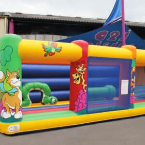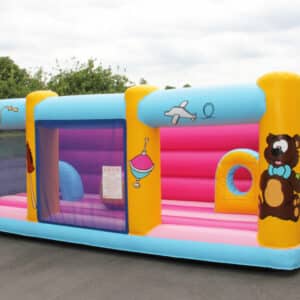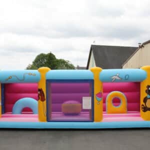 Ce matelas de jeu est spécialement conçu pour les enfants plus jeunes. Avec ses filets et son grand mur arrière, les bambins ne peuvent pas tomber hors du matelas. Le matelas a été rabaissé par rapport à un matelas gonflable classique. D’une hauteur totale de 40cm, les enfants peuvent entrer et sortir du jeu sans se faire mal. Les obstacles, eux aussi, ont été conçus à la taille des petits : une petite chenille et un asticot, ils pourront développer leur motricité.
