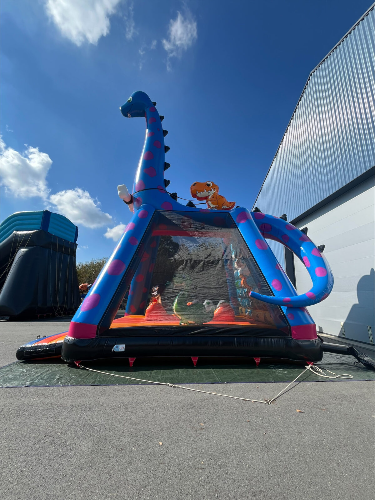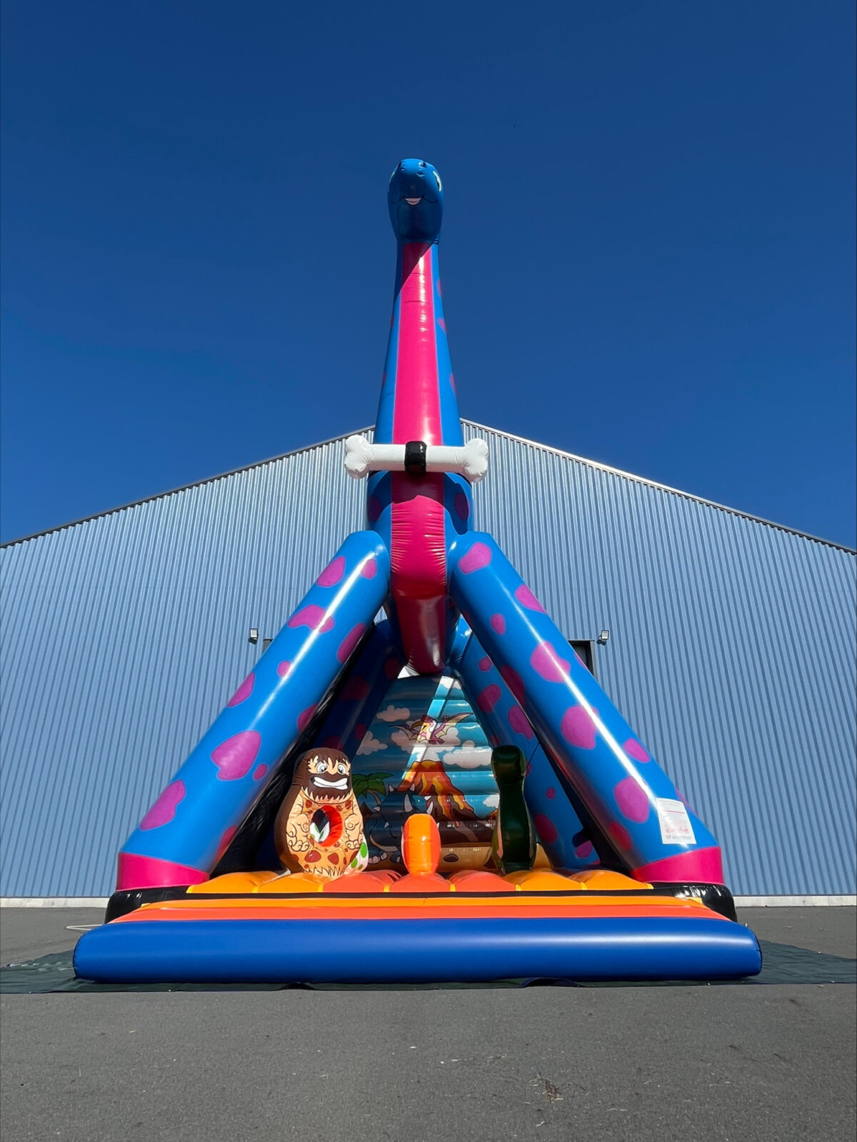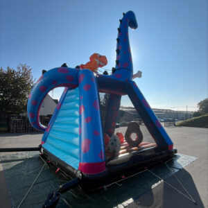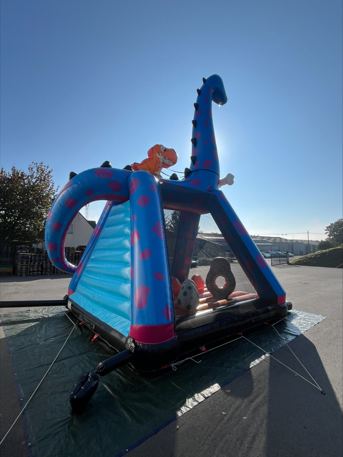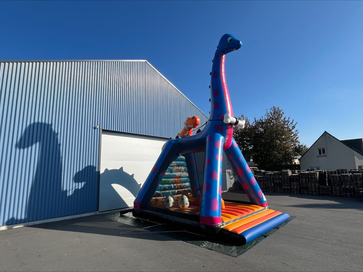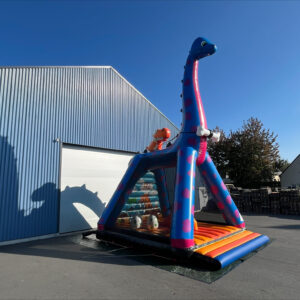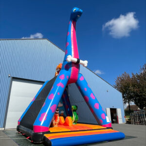 Plongez dans l’univers préhistorique avec ce spectaculaire jeu gonflable en forme de dinosaure ! Son immense structure colorée, dominée par un grand diplodocus bleu et ses amis dinosaures, attire tous les regards et promet des heures de fun pour les enfants.