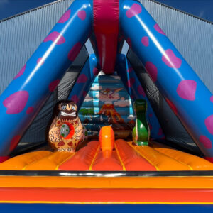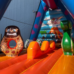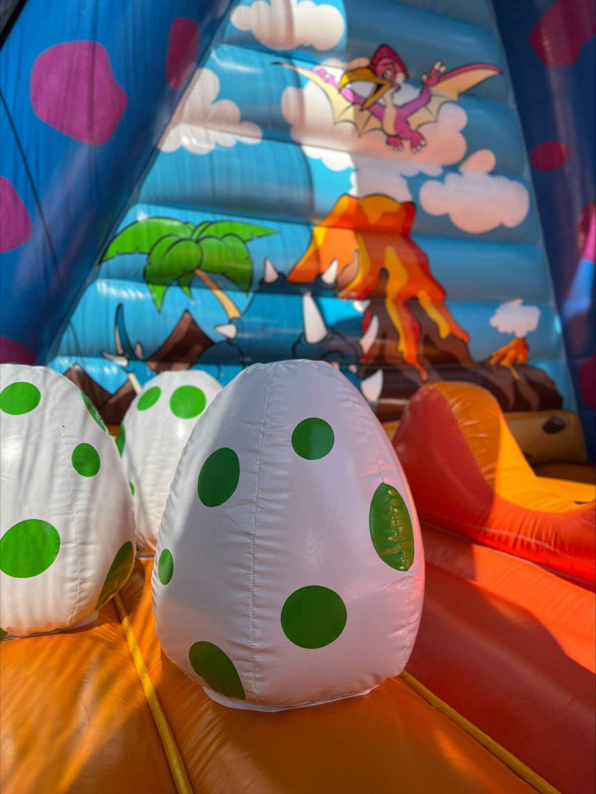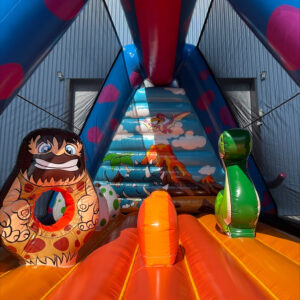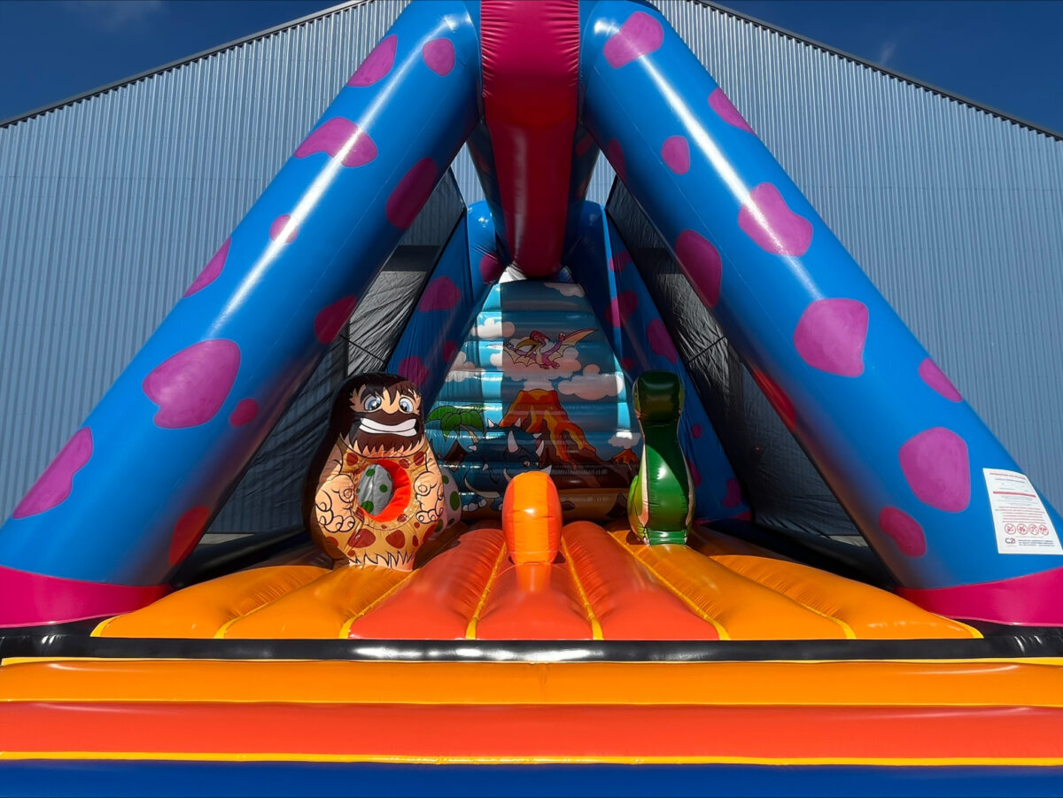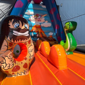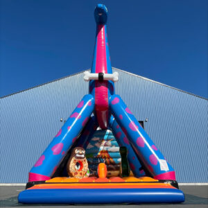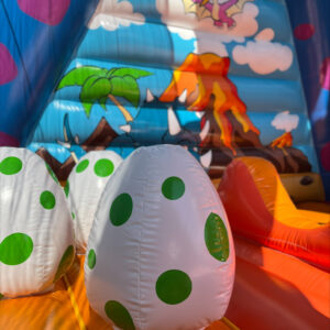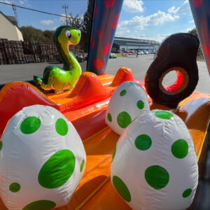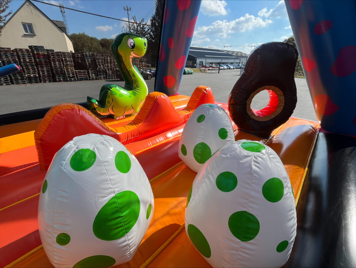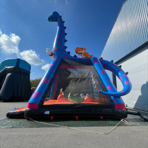 Plongez dans l’univers préhistorique avec ce spectaculaire jeu gonflable en forme de dinosaure ! Son immense structure colorée, dominée par un grand diplodocus bleu et ses amis dinosaures, attire tous les regards et promet des heures de fun pour les enfants.