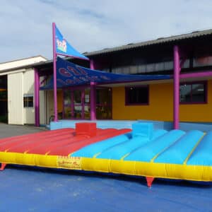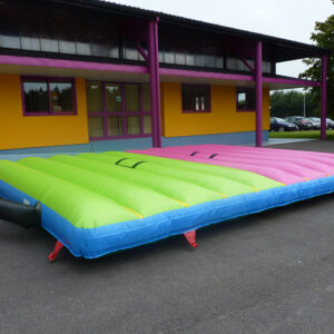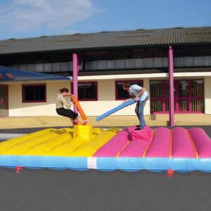 La joute cube mousse est un jeu d’animation conçue pour 2 joueurs. Chaque joueur est en équilibre sur un plot en mousse. Chaque joueur possède une barre en mousse avec lequel il doit faire tomber l’adversaire de son plot. Un jeu qui ne sera pas sans rappeler les joutes médiévales. Le matelas 6x5m permet de jouer en sécurité avec son grand format, il sera recevoir le joueur qui tombera de son plot. Le matelas est généralement fabriqué en 2 couleurs, mais si vous le souhaitez il peut être de couleur unie. Avec un poids de 60kg ce jeu convient parfaitement à la location, parfait pour créer l’événement.