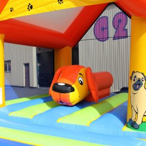 La Niche est un matelas gonflable avec un obstacle chien à bascule. Les enfants pourront grimper sur le chien et se balancer de droite à gauche, ou se mettre les uns derrière les autres, le dernier tombé est le gagnant ! Notre matelas gonflable est sécurisé avec ses filets sur les 3 côtés, les enfants peuvent jouer sans tomber du matelas. Avec sa grande entrée les parents peuvent surveiller les enfants.