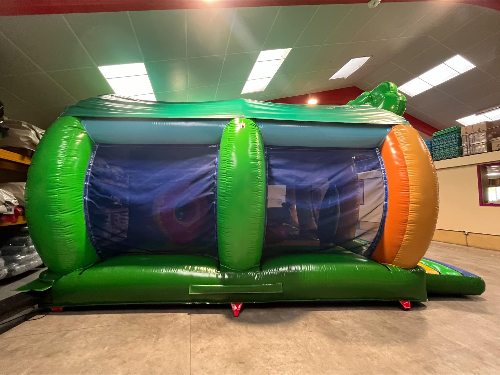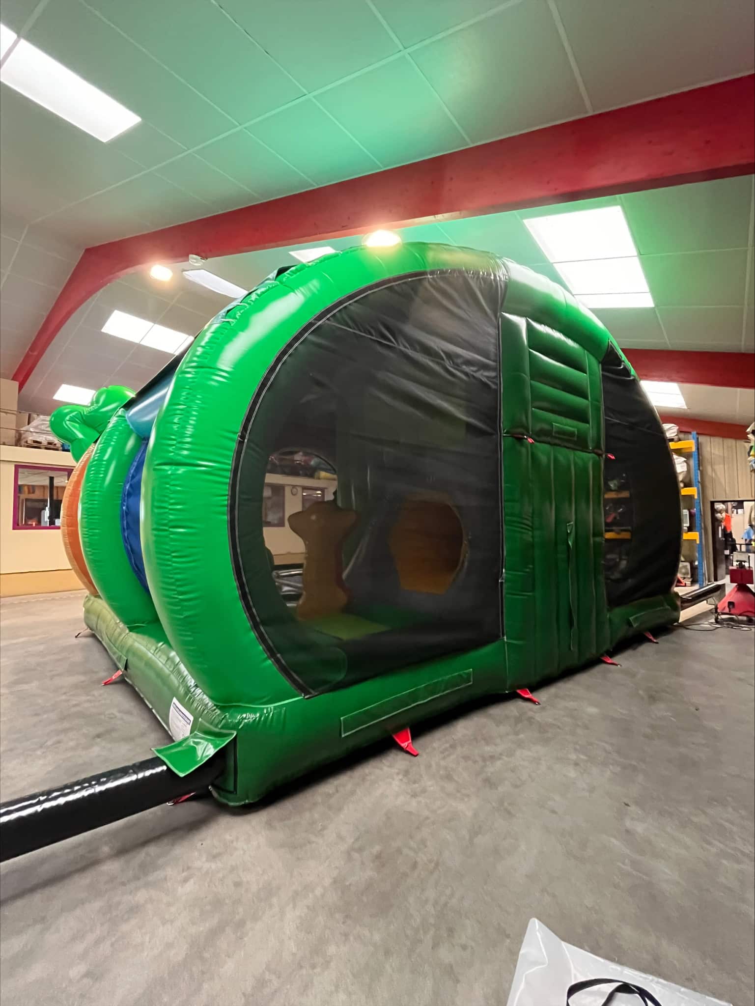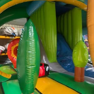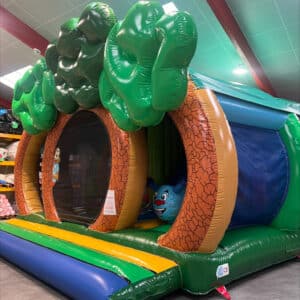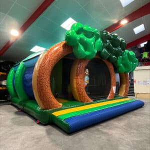 Avec son toit, il tiendra les enfants à l’abris. Ils pourront alors s’amuser à rebondir en interagissant avec les multiples obstacles, glisser sur le toboggan ou se faufiler dans le tunnel.