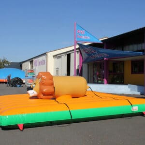Les chutes autour du rodéo sont sécurisés, grâce aux matelas de 5x5m. Vous pouvez changer les couleurs du jeu lors de la commande et tout ceci gratuitement ! L’obstacle pourra facilement être remplacé lors du S.A.V. puisqu’il est sur un accrochage velcro.