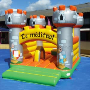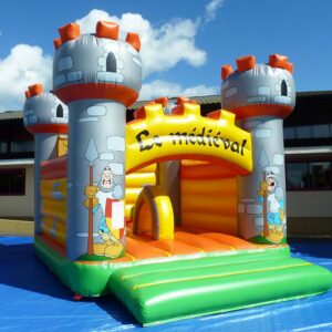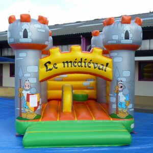 Le matelas gonflable médiéval est un matelas à sauter qui peut accueillir 20 enfants en même temps. Avec ses dimensions de 6×4.5m et son faible poids de 145kg, il est facile à manipuler. C’est un choix judicieux pour les loueurs qui cherchent un simple matelas d’obstacles. Il trouvera aussi sa place dans un camping, ou dans un parc de jeux à côté d’un jeu gonflable un peu plus complexe. Les enfants peuvent s’amuser avec les 2 obstacles sur le matelas : 1 boule et 1 petit pont. La grande entrée en façade permet aux parents de surveiller leurs enfants de loin.