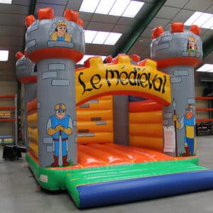 Le matelas gonflable médiéval est un matelas à sauter qui peut accueillir 20 enfants en même temps. Avec ses dimensions de 6×4.5m et son faible poids de 145kg, il est facile à manipuler. Idéal pour la location, il trouvera aussi sa place dans un camping ou dans un parc de jeux à côté d’un jeu gonflable un peu plus complexe. Grâce aux murs sur les côtés et au fond les enfants jouent en toute sécurité. La grande entrée en façade permet aux parents de surveiller leurs enfants de loin.