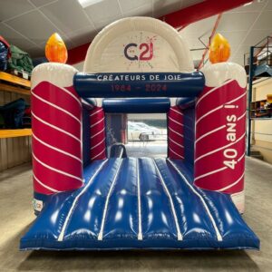 Un jeu pour les plus petits pouvant accueillir 10 personnes. Il pèse seulement 45kg et mesure 4×3.2m. Ses filets tout autour ont la particularité de laisser passer la lumière, ce qui permet de voir ce qui se passe dans le jeu. L’entrée en pente et la faible épaisseur du matelas, permet aux plus jeunes de pouvoir entrer et sortir tout seul.