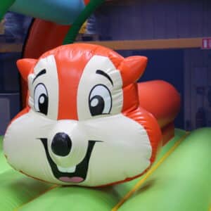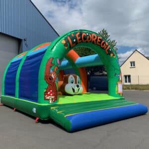 Jeu gonflable pour les enfants avec filets et un obstacle écureuil