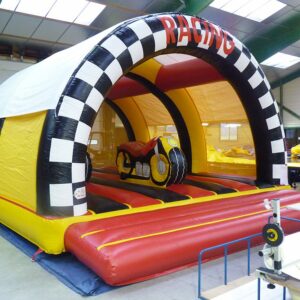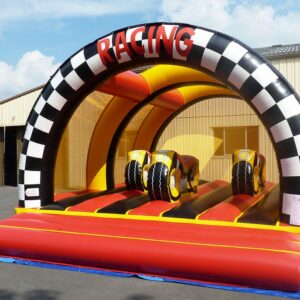 Le matelas gonflable Racing est un jeu avec 3 gros obstacles motos qui peut accueillir pas moins de 25 enfants. Plus large que sa cousine la chenille sous 3 arches qui équipe un grand nombre de nos clients.
