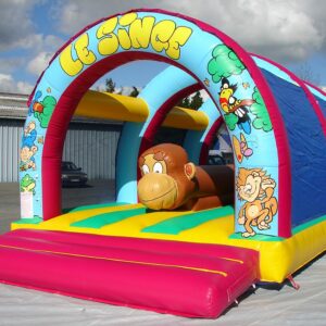 Adapté du célèbre jeu chenille sous 3 arches qui équipe un grand nombre de nos clients. Le matelas gonflable Singe est un jeu avec un grand obstacle central qui peut accueillir pas moins de 25 enfants. Avec ses dimensions de 7.5 x 5m et son faible poids, il est facile de le déplacer. Il peut être un choix intéressant pour les loueurs qui cherchent un classique.