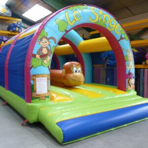 Jeu gonflable pour amuser les enfants avec un obstacle singe