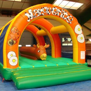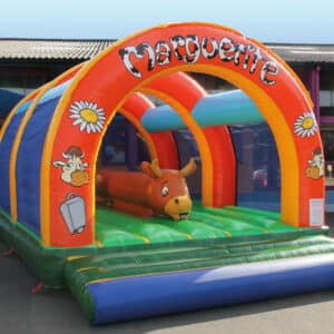 Adapté du célèbre jeu chenille sous 3 arches qui équipe un grand nombre de nos clients. Le matelas gonflable Vachette est un jeu avec un grand obstacle central qui peut accueillir pas moins de 25 enfants. Avec ses dimensions de 7.5 x 5m et son faible poids, il est facile de le déplacer. Il peut être un choix intéressant pour les loueurs qui cherchent un classique.