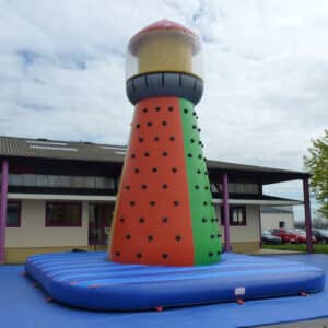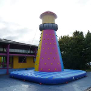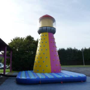 Le phare 4 pistes est une animation gonflable de 9m de haut. Il est composé de 4 pistes d’une hauteur de 5m sur lesquelles sont fixées des prises en mousse. Les prises en mousse sont destinées à ceux qui cherchent un jeu axé sur le loisir. Les prises en mousse carrées offrent une préhension assez facile pour les débutants ou ceux qui veulent tout simplement s’amuser. Chaque piste a un niveau de difficulté différent. Les joueurs pourront utiliser le jeu à condition qu’une autre personne soit là pour assurer le grimpeur (comme en escalade) ou alors si le joueur est équipé d’un anti-chute à sangle.