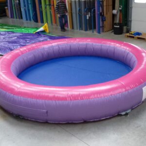 Notre piscine à boule peut contenir jusqu’à 3 000 boules, son diamètre est de 4.3m extérieur. Au fond de la piscine nous avons cousu un filet pour retenir les boules.