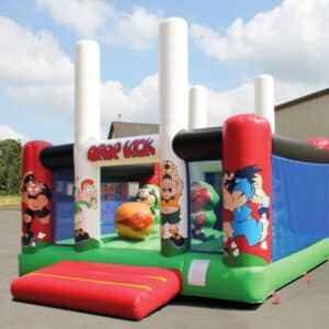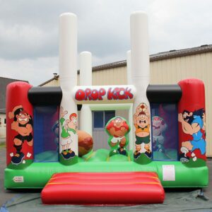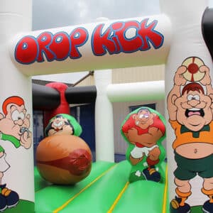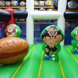 Matelas gonflable thème rugby avec des obstacles joueurs de rugby