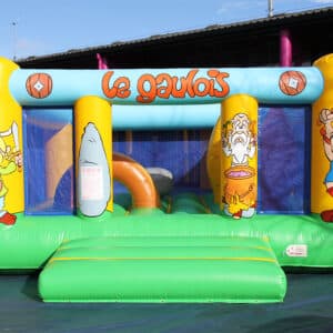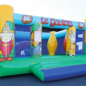 Chateau gonflable avec 4 obstacles & déco thème gaulois