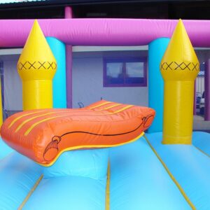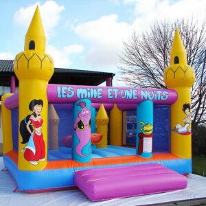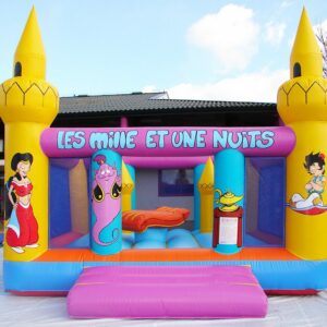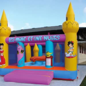 Jeu gonflable avec filets tout autour et des obstacles thème oriental