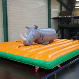 Le rodéo gonflable est un jeu d’animation ou l’on peut jouer à 5 personnes en même temps. 4 personnes s’occupent de tirer sur les sangles pour secouer le rodéo est faire tomber la personne dessus. Une fois que le joueur est tombé c’est à la personne suivante de prendre place, et ainsi de suite jusqu’à ce que les 5 joueurs soient passés.