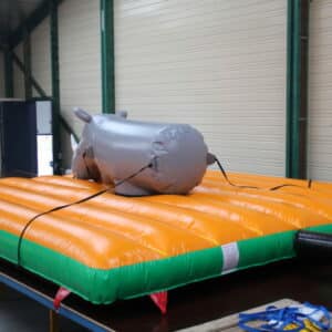 Les chutes autour du rodéo sont sécurisés, grâce aux matelas de 5x5m. Vous pouvez changer les couleurs du jeu lors de la commande et tout ceci gratuitement ! L’obstacle pourra facilement être remplacé lors du S.A.V. puisqu’il est sur un accrochage velcro.
