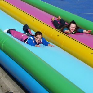 La glisse a une longueur de 15m et il y a 2 couloirs pour le challenge !