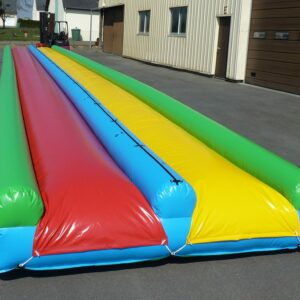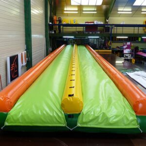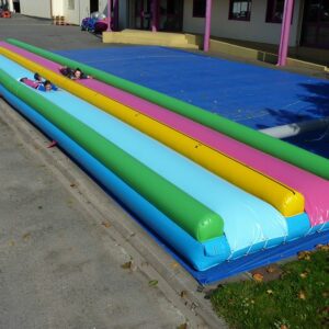 Pour arroser la glisse nous avons fixé un tuyau d’eau micro-perforé sur le boudin central qui arrose chaque piste. Vous pouvez choisir les couleurs du jeu lors de votre commande.