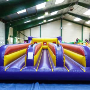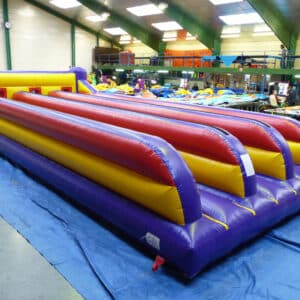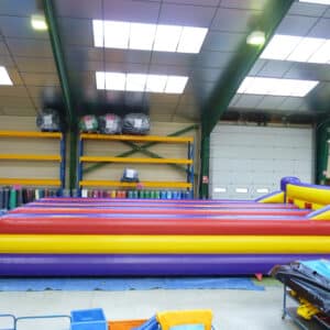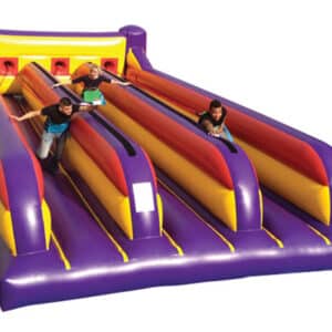 Le jeu du tir élastique est l’un des jeux gonflables les plus connus. Dans ce jeu à l’élastique de 3 couloirs parallèles, les joueurs doivent poser leurs témoins velcro (scratch) le plus loin possible pour gagner. La difficulté vient du fait que les participants sont attachés à un élastique qui les tire vers l’arrière. Sur trois pistes gonflables trois joueurs sont attachés avec des élastiques, chacun à son couloir. Les concurrents doivent courir et scratcher leurs témoins aussi loin que possible sur le mur de séparation. Fabriqué dans nos ateliers en France, ce jeu gonflable est facile à mettre en place et conviendra aux clubs sportifs, aux loueurs et même aux parcs de jeux gonflables intérieurs comme extérieurs.