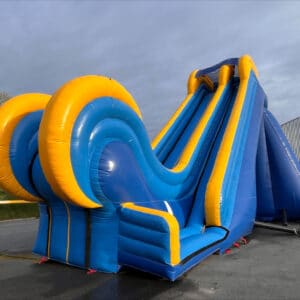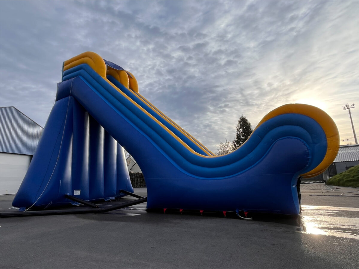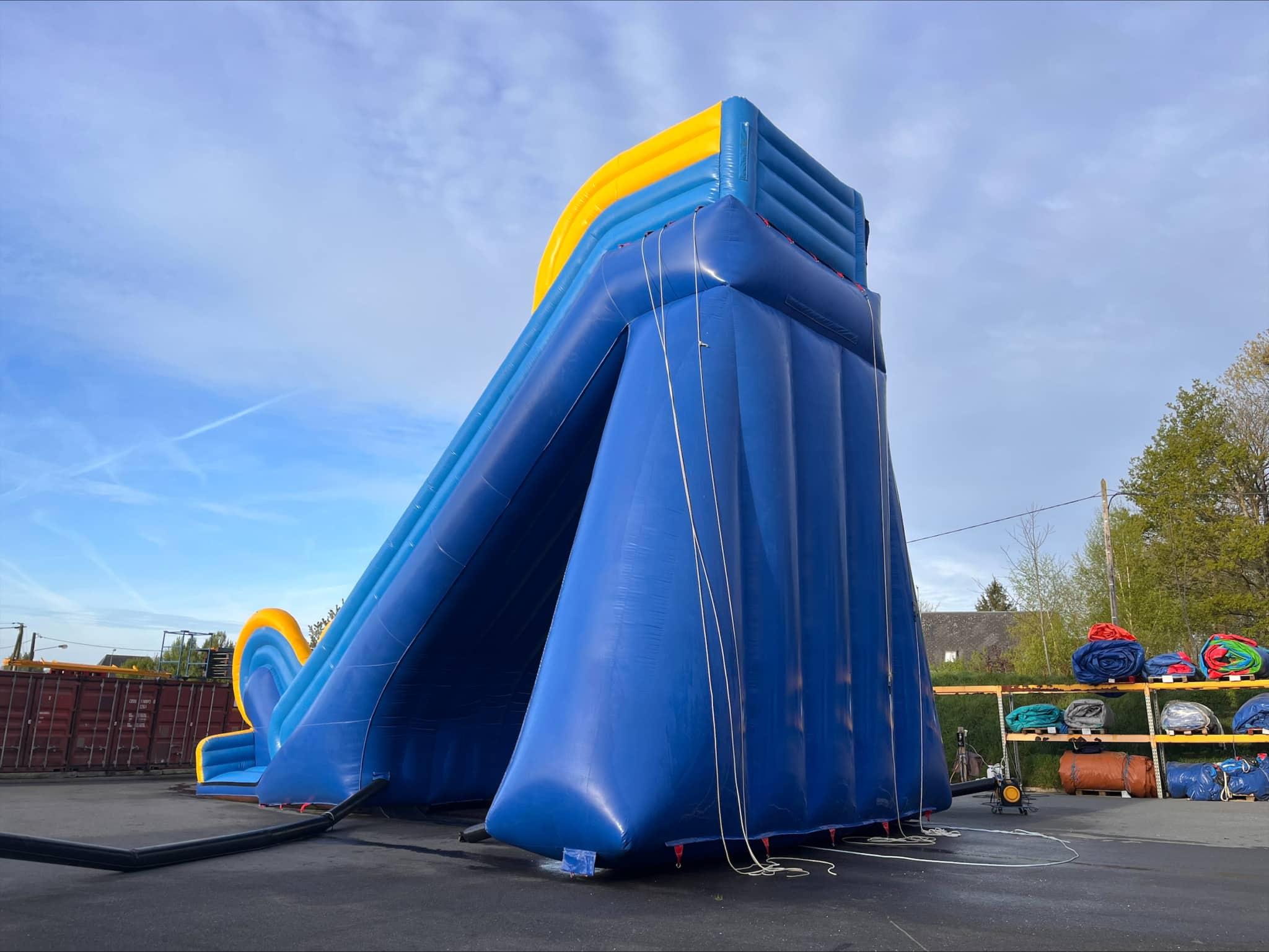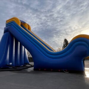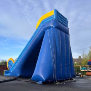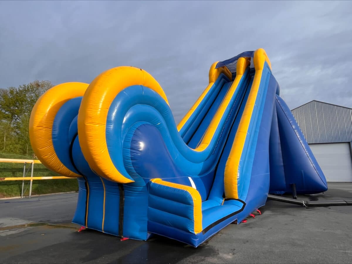 Jeu gonflable de fabrication française C2J vendu avec gonfleur, piquets et bâche de sol