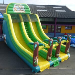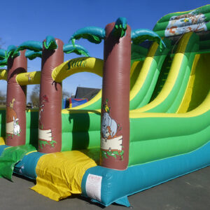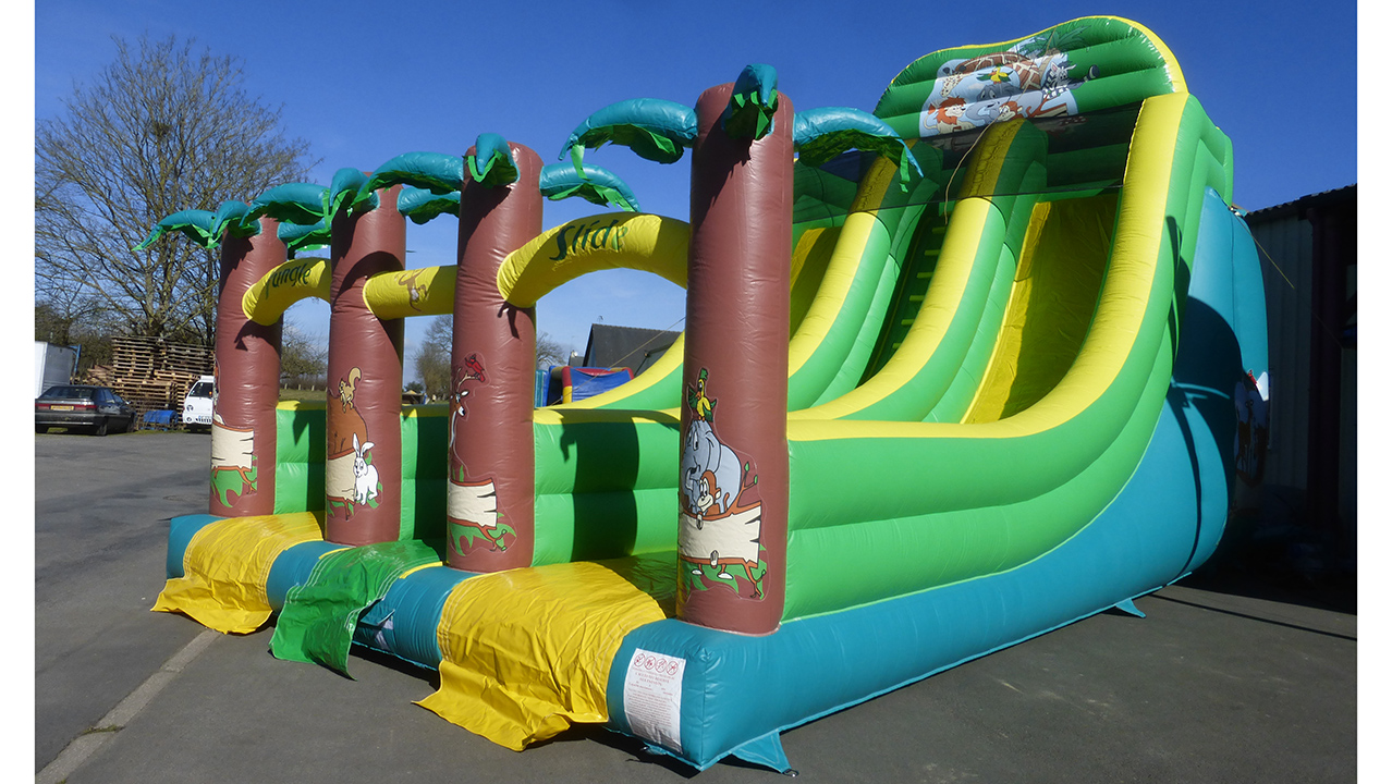 Toboggan gonflable 2 glisses avec escalier central pour grimpette
