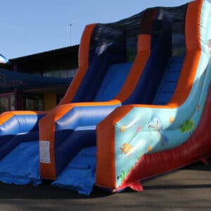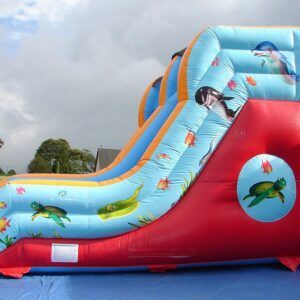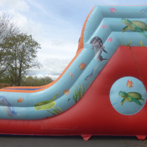 Toboggan gonflable déco mer descente sans bosse avec escalier pour les enfants